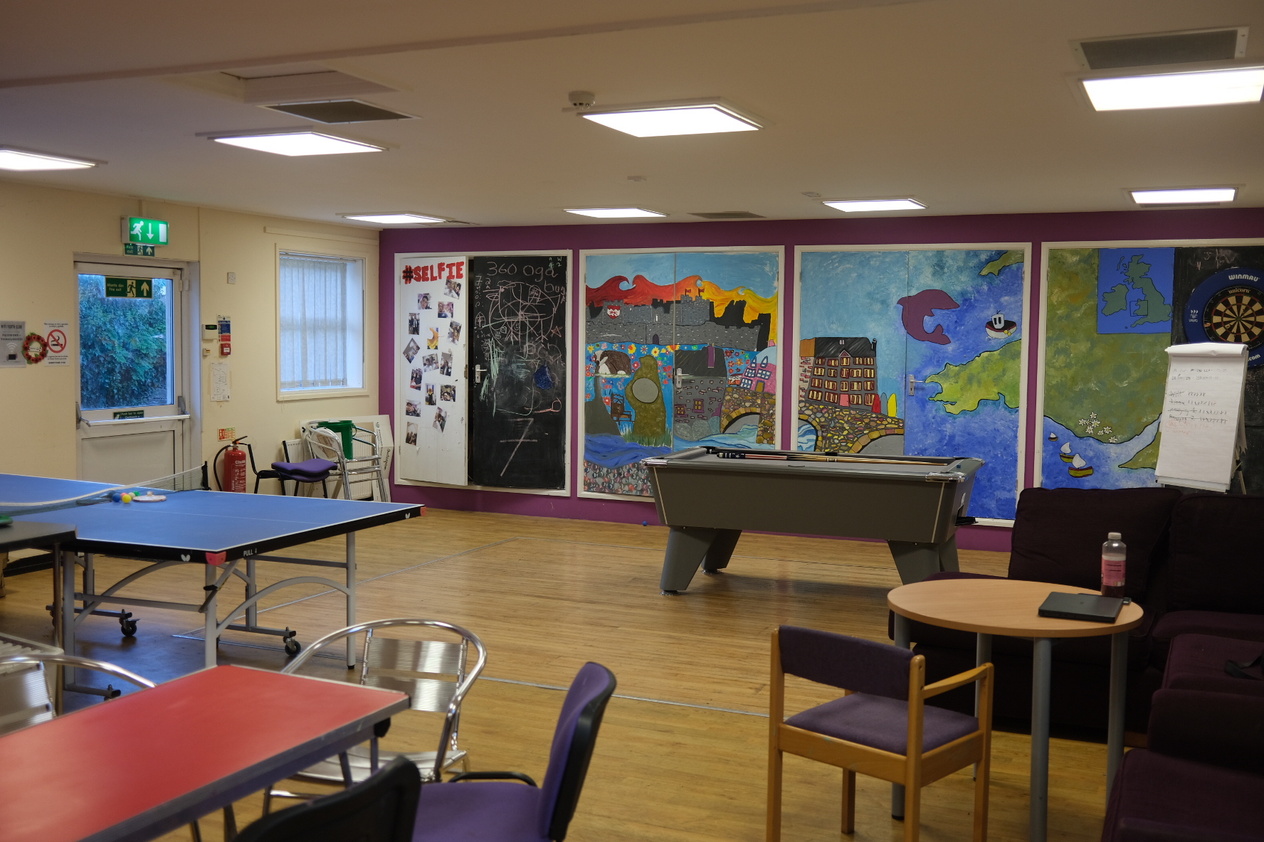 Beth sydd ar gael: bwrdd biliards, tenis bwrdd, dartiau, celf a chrefft, gemau bwrdd, bwyd a byrbrydau.